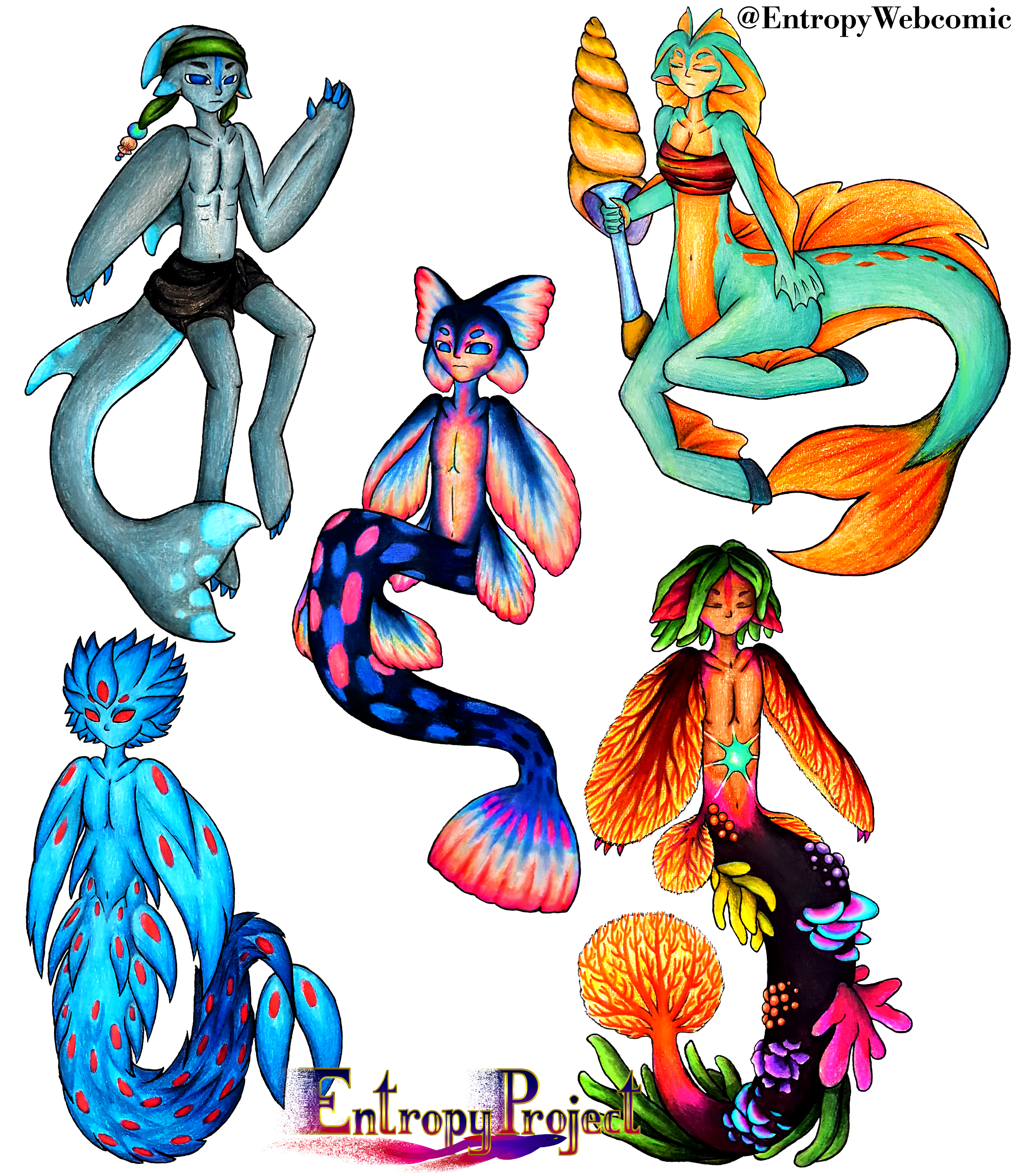 Tropical Merfolk drawings, |